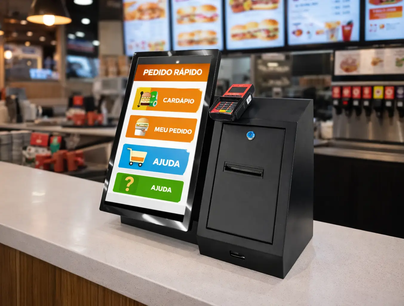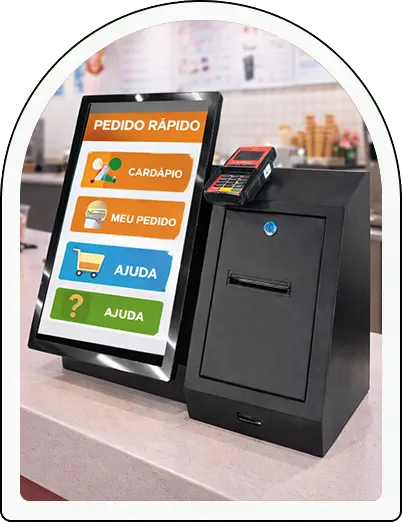 Projetado para ser instalado sobre o balcão, o Totem Balcão organiza pedidos, agiliza escolhas e melhora o fluxo de atendimento.